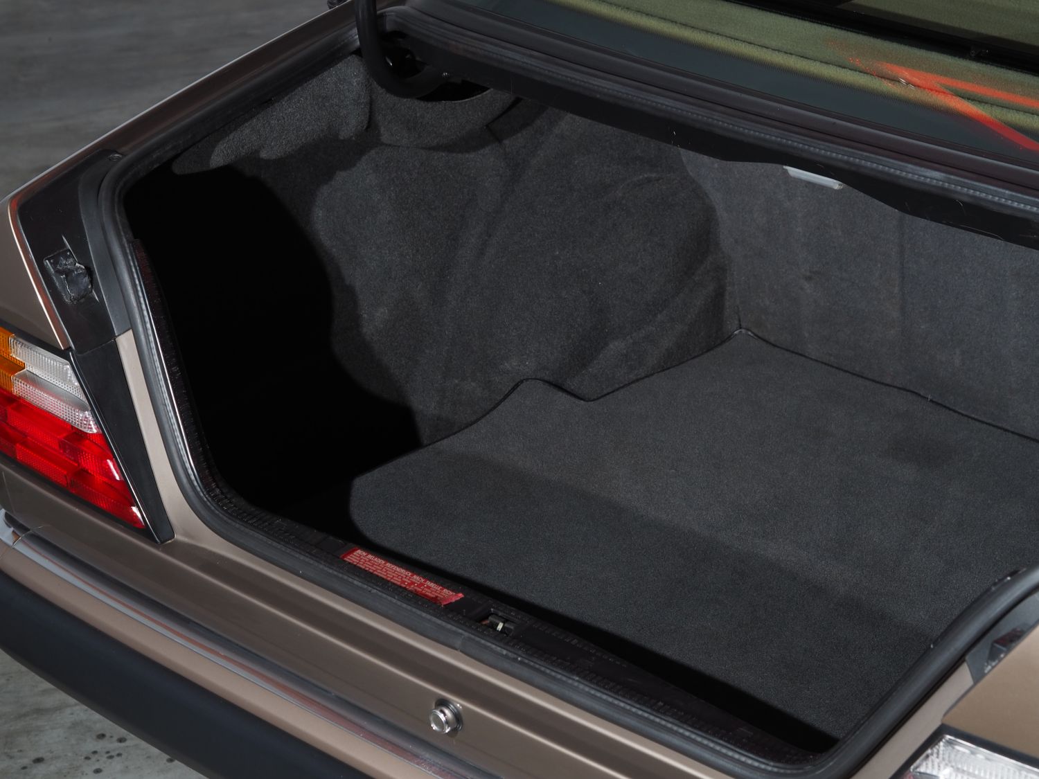 - Leder Dattel-Safran 264, Vordersitze el. verstellbar 221 + 222, Aussentemperaturanzeige 240, Lederlenkrad und -schalthebel 281, Schiebe-Hebedach el. 412, Kopfstützen im Fond 430, Tempomat 440, Rolle el. für Heckfenster 540, Sonnenblenden mit Make-up-Spiegel 543, Armlehne klappbar vorn 570, Klimaanlage 580, el. Fensterheber vorn 583, WD-Glas grün 592, Ausstiegsleuchten in den Türen 611, LM-Räder 15-Loch 640, Holzausführung Wurzelnuss 731, Sitzheizung vorn 873, Leseleuchte im Fond 877